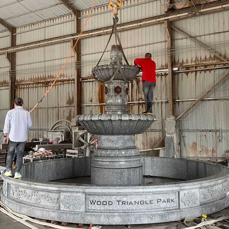 ນ້ຳພຸທີ່ໄຫຼລົງມາແມ່ນເຮັດດ້ວຍຫີນປູນທີ່ນຳເຂົ້າຈາກປະເທດອີຢິດ ແລະ ໄດ້ຮັບການປະດິດສ້າງດ້ວຍເຄື່ອງຈັກ ແລະ ຝີມືປະສົມກັນ. ນ້ ຳ ຖືກສູບຈາກສະລອຍນ້ ຳ ໄປຫາຈຸດສູງສຸດຂອງນ້ ຳ ພຸ, ບ່ອນທີ່ມັນພົ່ນອອກ. ນ້ຳໄຫຼລົງມາຕາມຊັ້ນຂອງອ່າງຫີນ ແລະໃນທີ່ສຸດລົງສູ່ສະນ້ຳລຸ່ມ. ຜະລິດຕະພັນນີ້ຖືກນໍາໃຊ້ໃນສີ່ຫຼ່ຽມມົນ, ສວນສາທາລະນະ, ແລະເດີ່ນ.